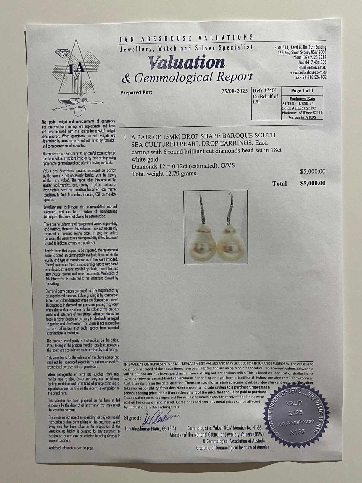 Accompanied by: These Diamond & Pearl Earrings are accompanied by Valuation Certificate Reference 37401 dated 25/08/2025.