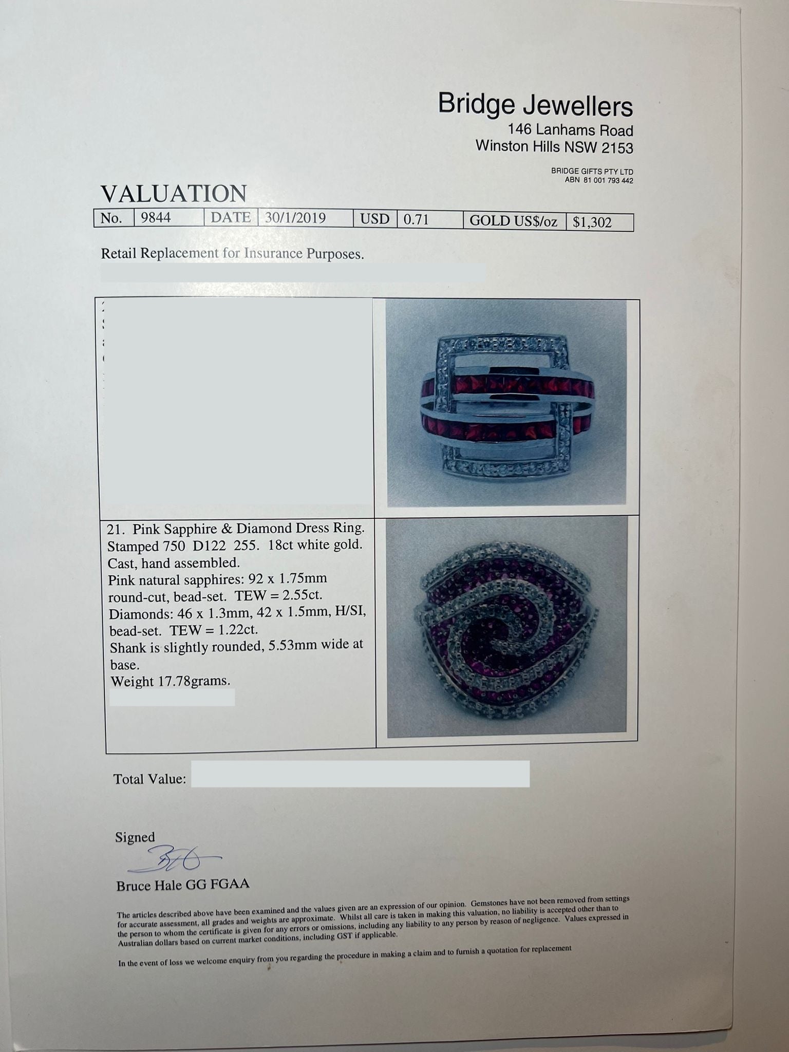 Accompanied by: This Sapphire and Diamond Dress Ring is accompanied by Bridge Jewellers Valuation (#9844 dated 30/01/2019).