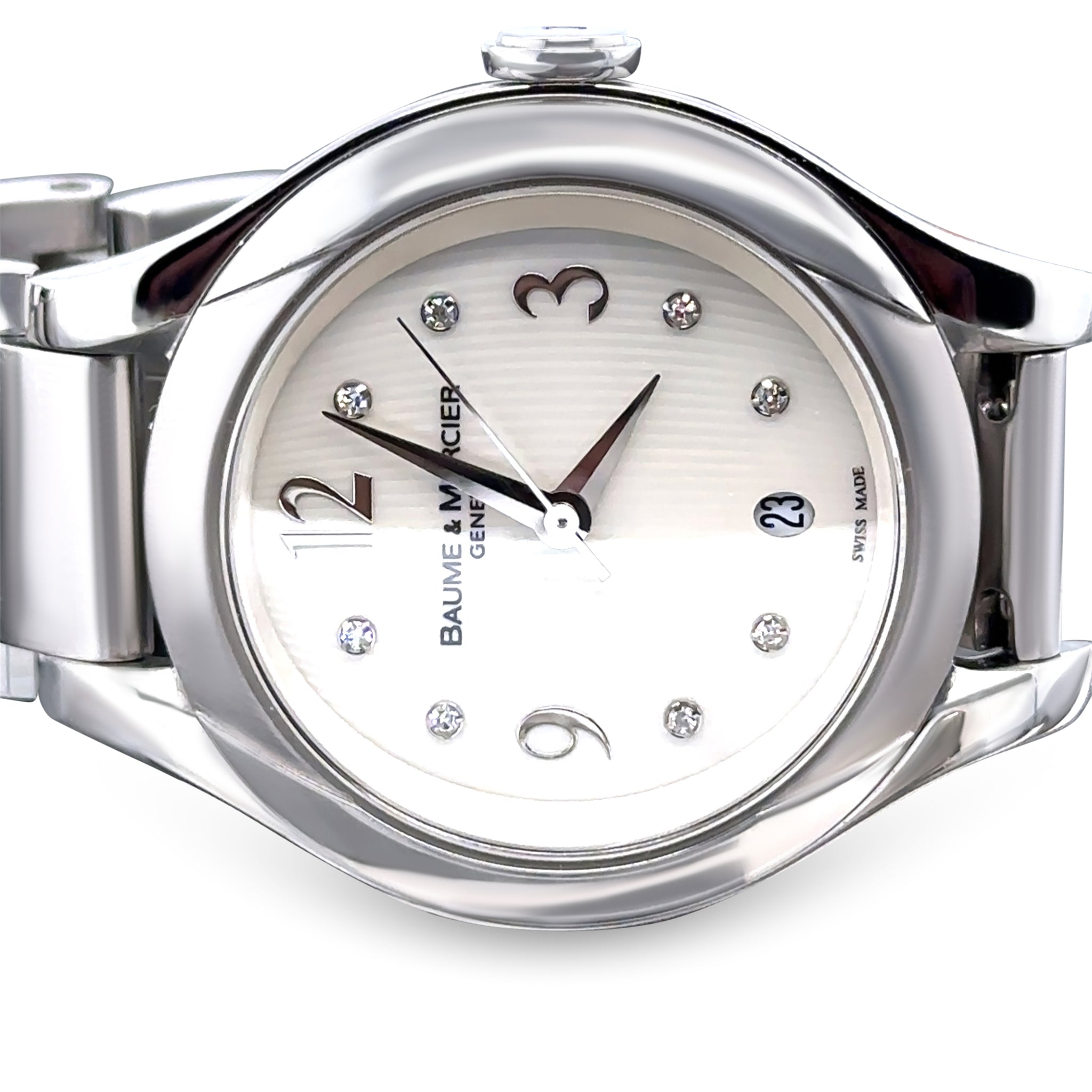 Powered by a Swiss quartz analogue movement, the watch is water resistant to 30 metres, making it suitable for daily use. A classic and feminine timepiece from Baume & Mercier, renowned for its Swiss watchmaking heritage and understated elegance.