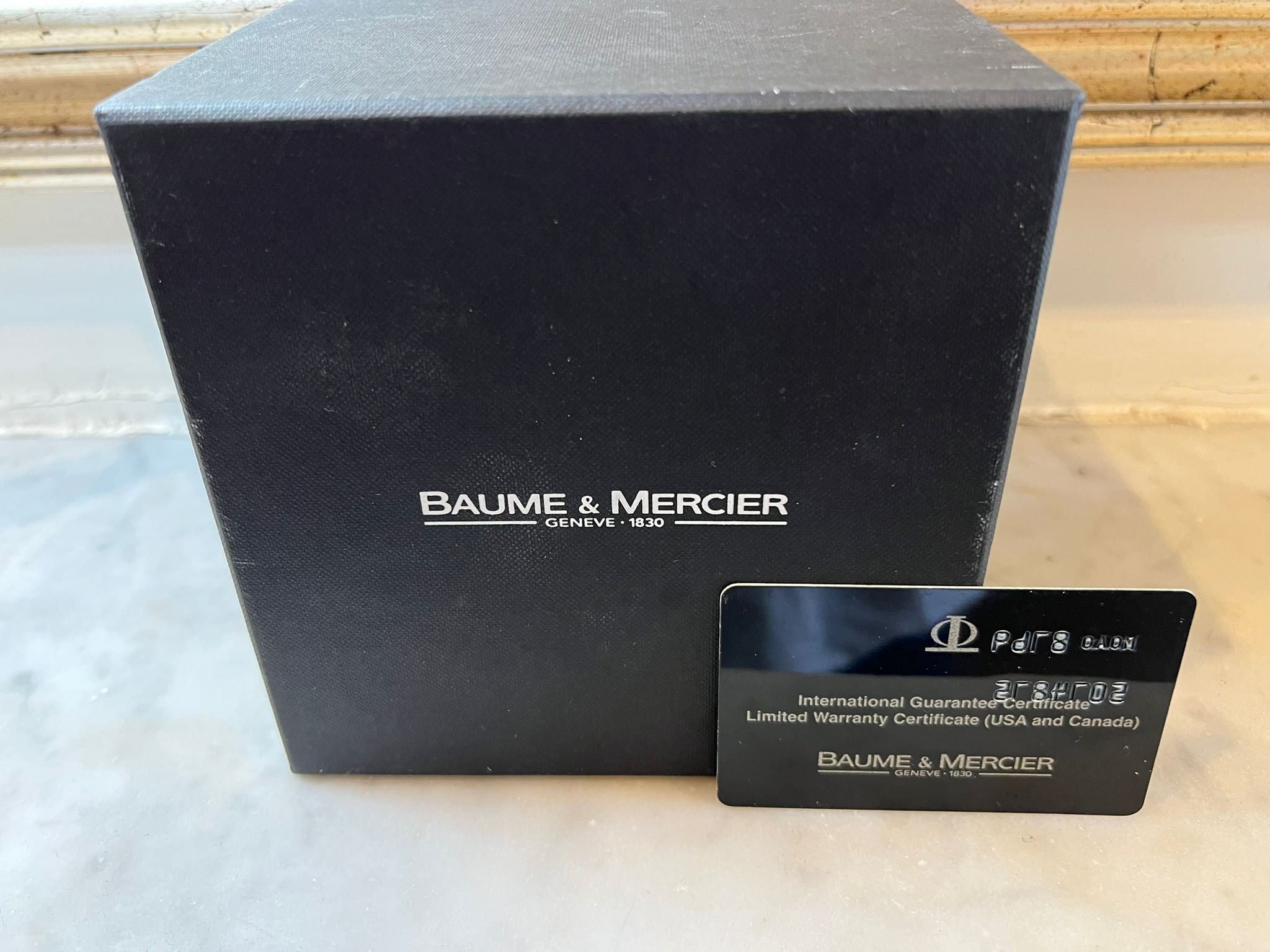 Accompanied by: This Baume & Mercier watch is accompanied by the original Baume & Mercier watch box, original Anthony's Fine Jewellery receipt, and international guarantee certificate dated 18/07/2009.
