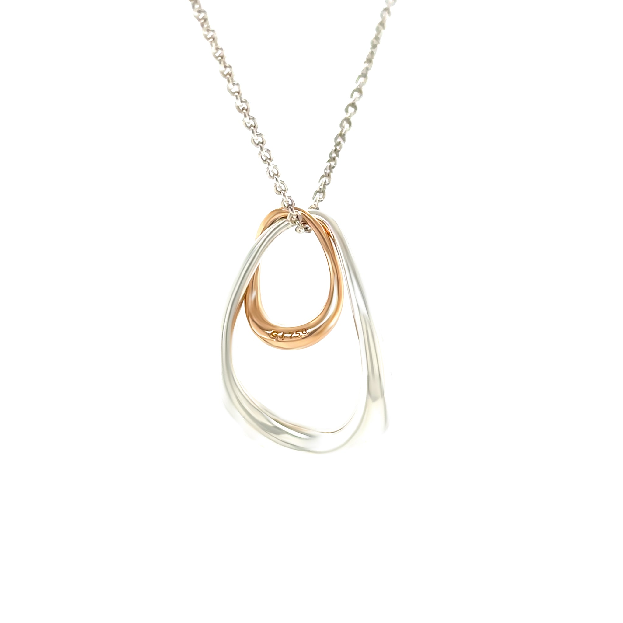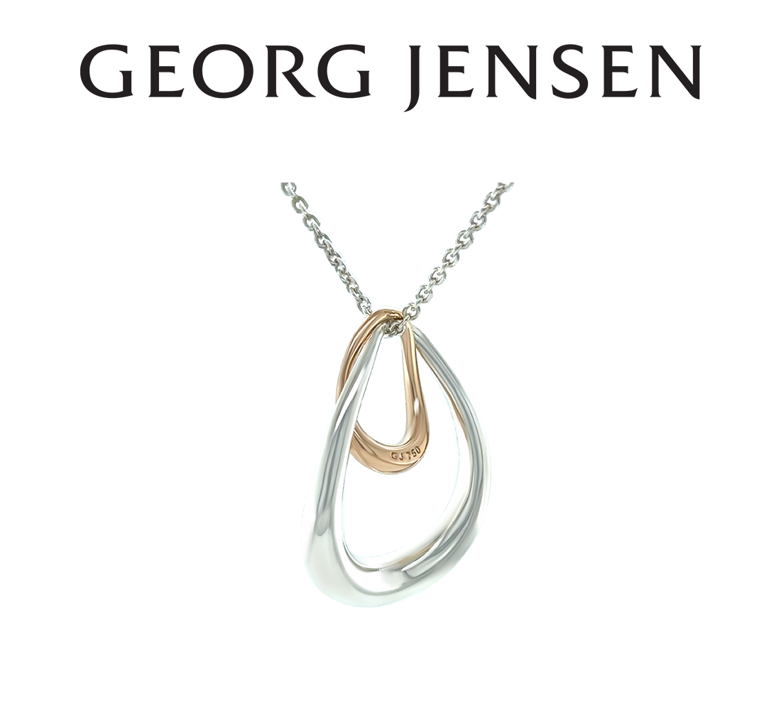 This elegant Georg Jensen Offspring necklace features a beautifully sculpted pendant crafted in sterling silver and 18ct rose gold, symbolising the unique bond between loved ones. Weighing 6.22 grams, the design reflects Georg Jensen’s signature balance of modern simplicity and timeless craftsmanship.