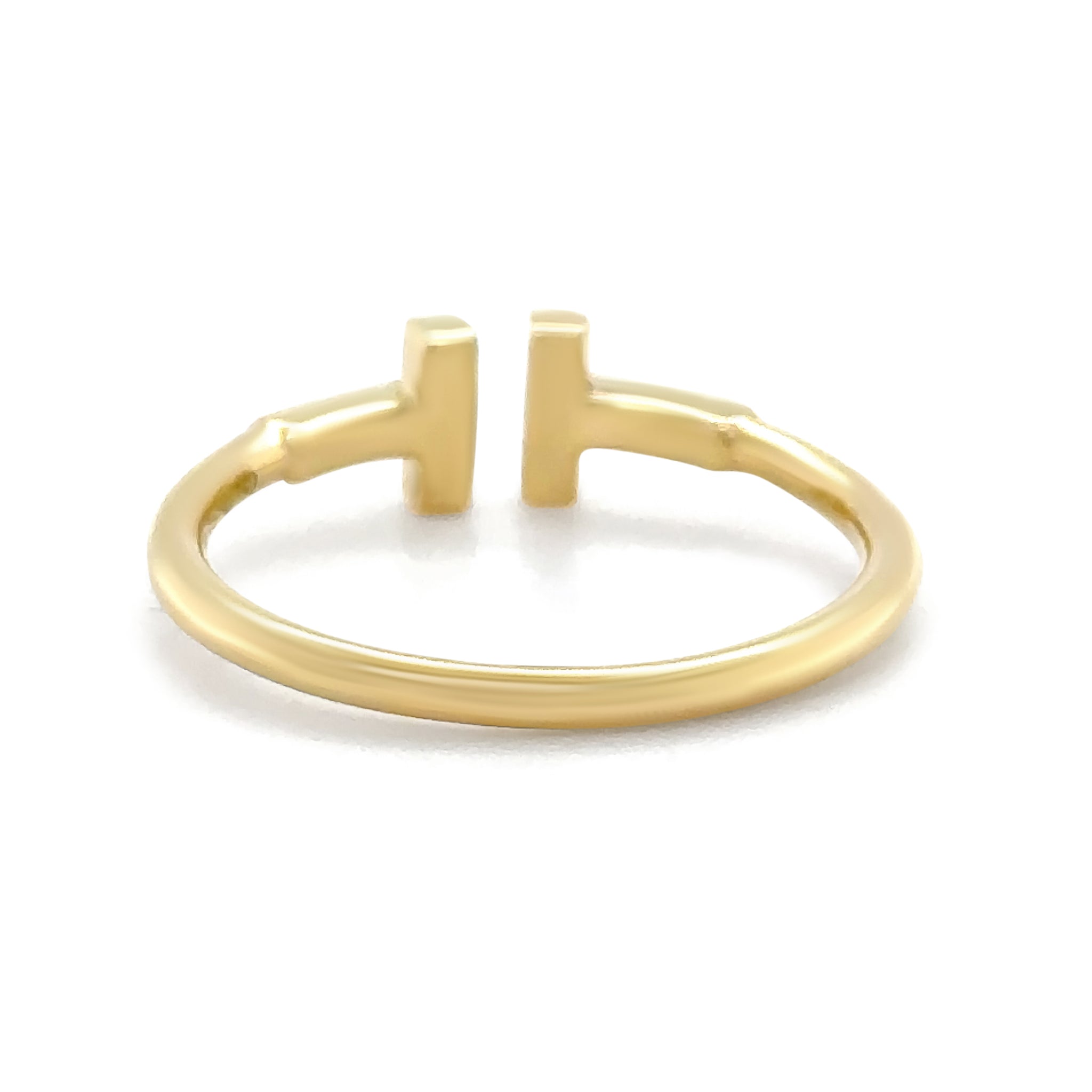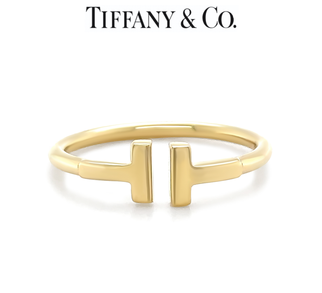 A contemporary Tiffany & Co. T Wire ring crafted in 18ct yellow gold, showcasing the brand’s iconic minimalist design inspired by clean architectural lines. The polished wire-style band forms the distinctive “T” motif, offering a refined yet modern aesthetic that is effortlessly wearable.