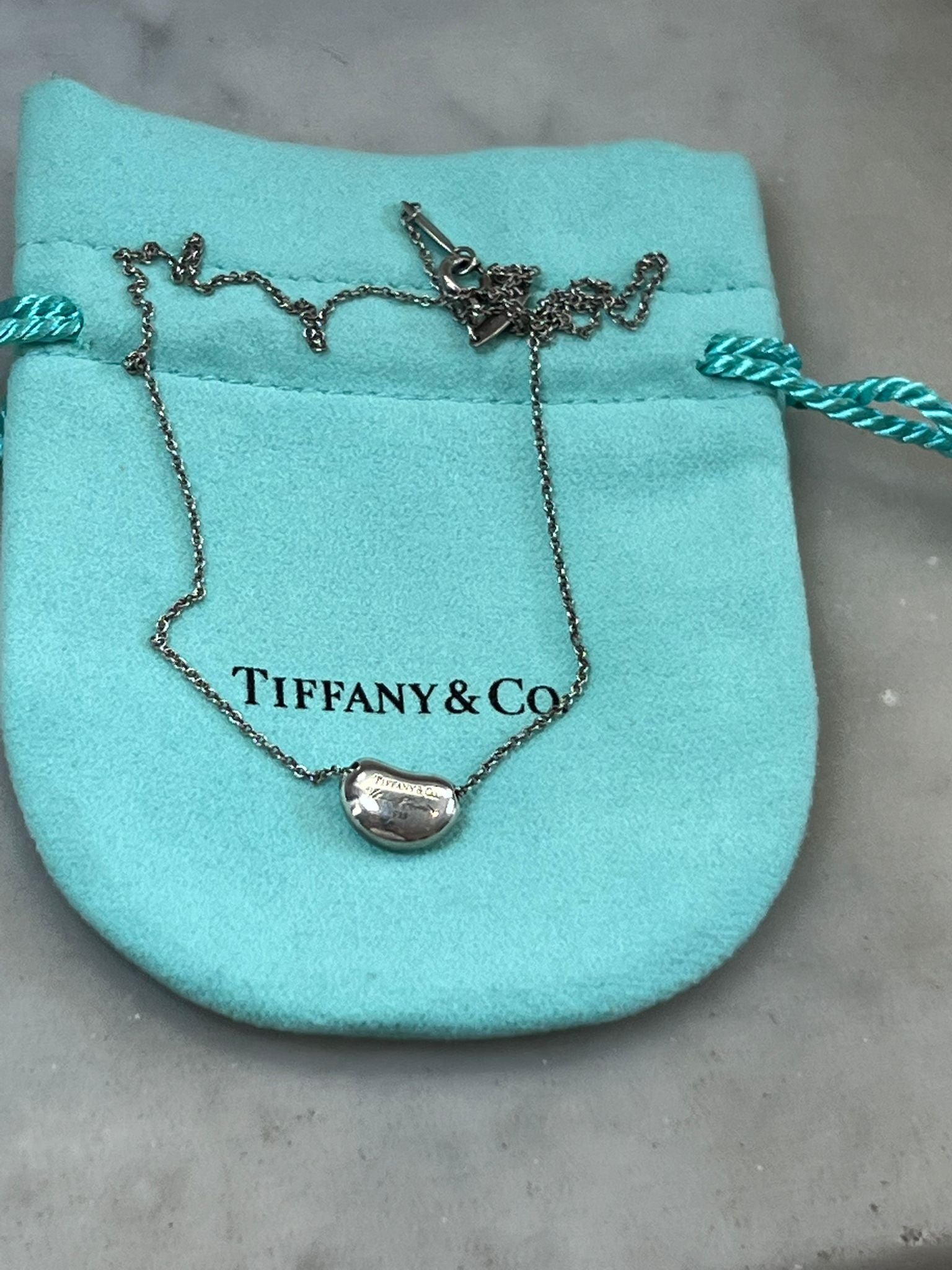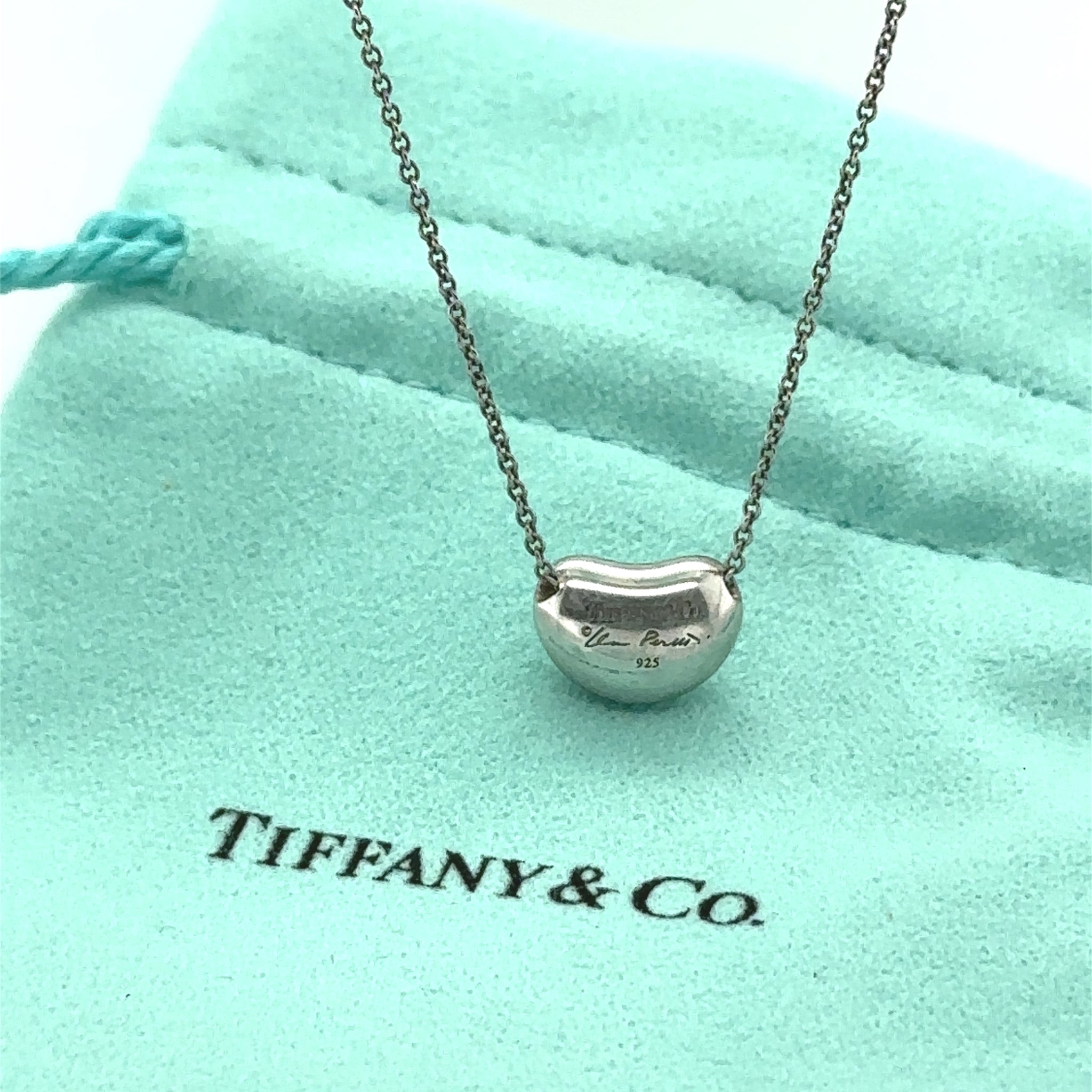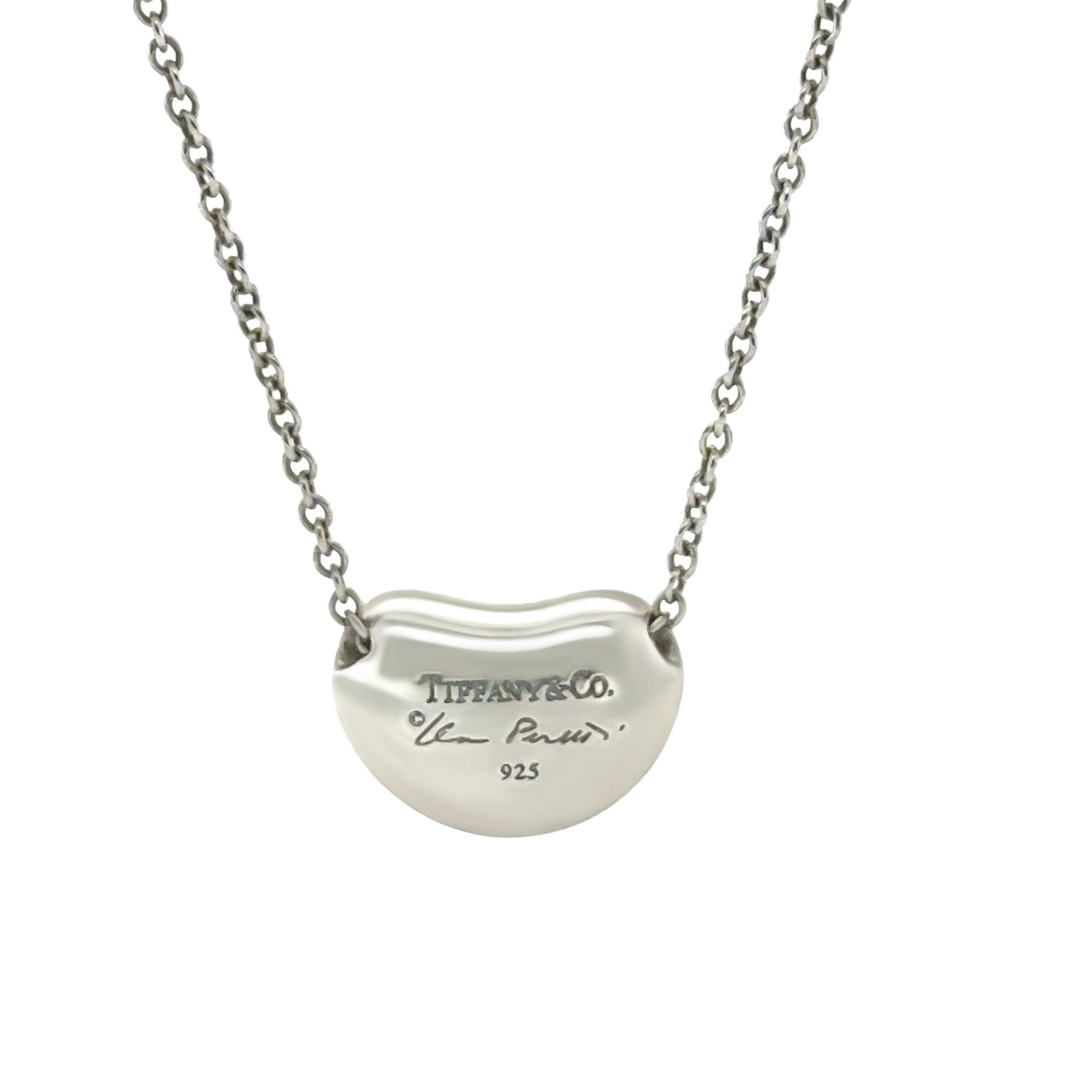 An authentic Tiffany & Co. Elsa Peretti Bean Design pendant necklace, crafted in sterling silver and showcasing one of Elsa Peretti’s most iconic and enduring designs. The softly sculpted bean motif symbolises beginnings, simplicity and organic beauty, hallmarks of Peretti’s timeless design language.