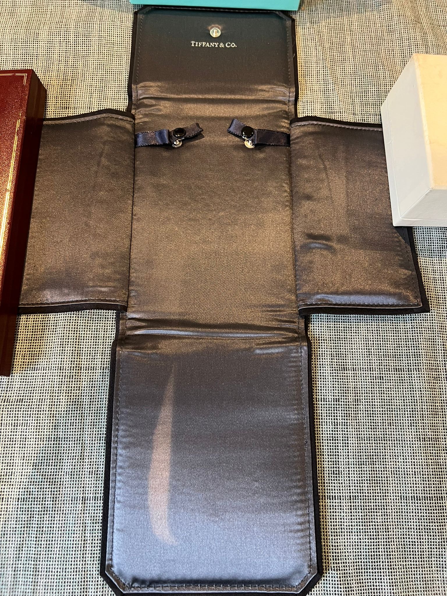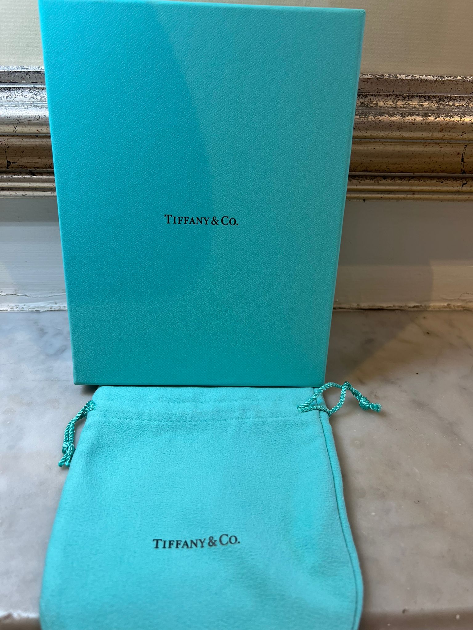The matching drop earrings measure approximately 2.0cm in length and 0.7cm in width, with a combined weight of 3.5 grams. Together, the set has a total weight of approximately 12.92 grams and exemplifies Tiffany & Co.’s iconic design language -balancing classic elegance with distinctive character.